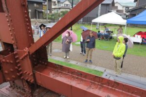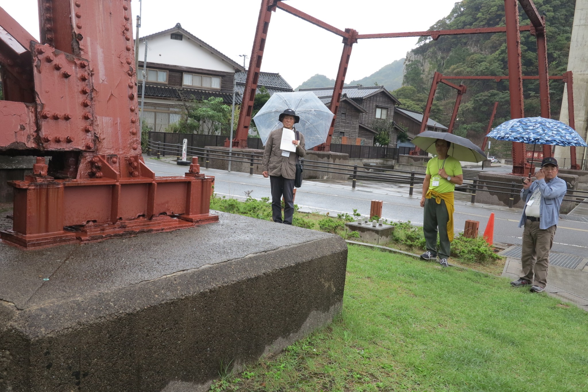 今回のナビゲーターは、ヘリテージマネージャーとして地域の歴史的建造物保全に尽力されている、豊岡支部の池口氏。専門的な知見から、橋の構造美と、駅誕生にまつわる秘話を語っていただきました。